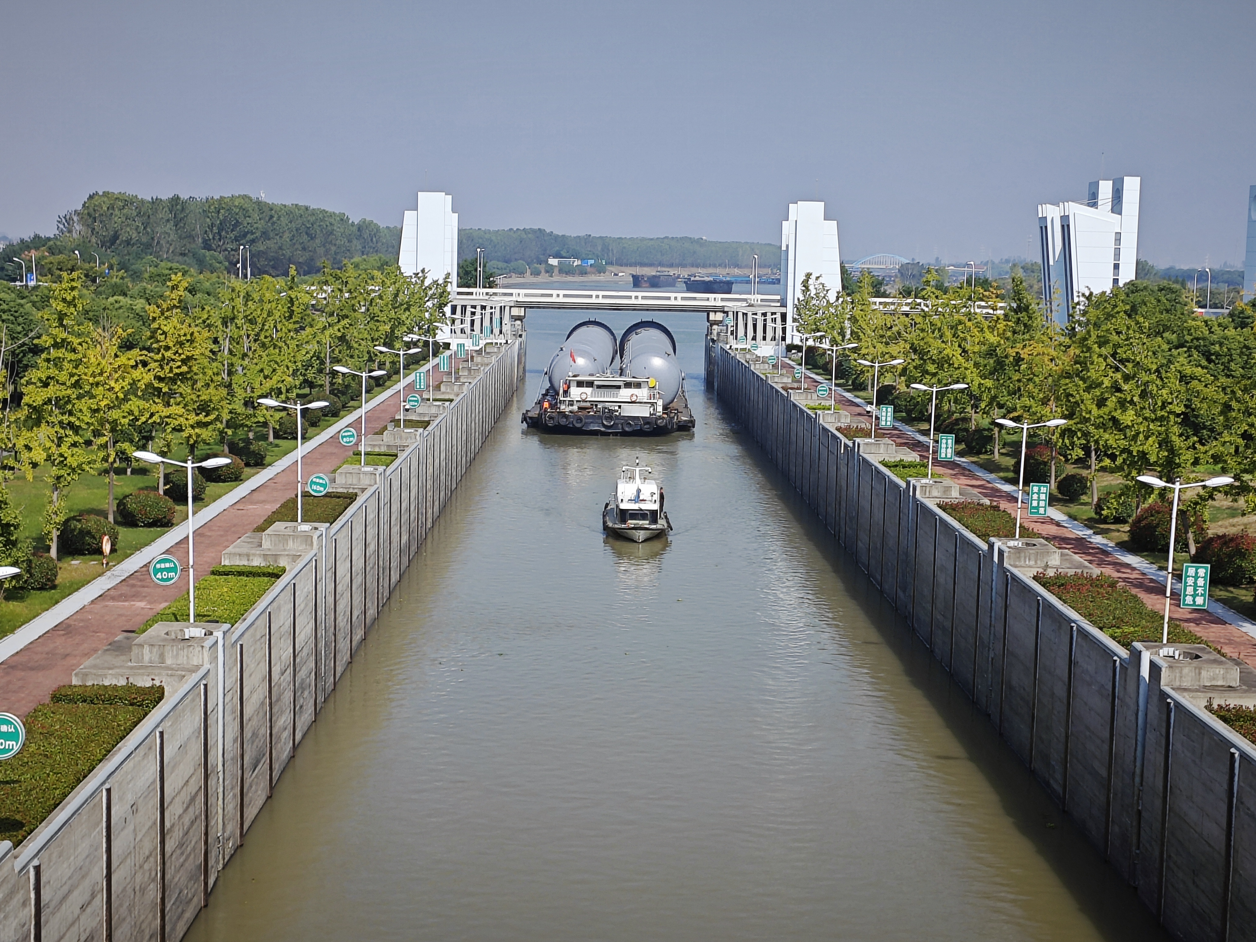(大件运输船舶过闸顺利入江)
