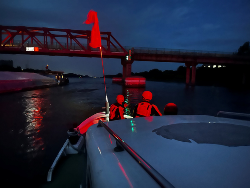 “是交通执法支队水上二大队么?有人在引江河寺巷桥准备跳水自杀,请做好救援准备。”7月18日凌晨3点,泰州交通执法支队水上执法二大队高港执法站点突然接到泰州水上搜救中心电话,生命至上,值班人员接到警情,立即带上装备,迅速出发,在与消防队员汇合后,奔赴事发地点。途中再次接到搜救中心电话,男子已跳河,执法人员随即在寺巷桥水域进行搜寻,但并未发现落水人员。