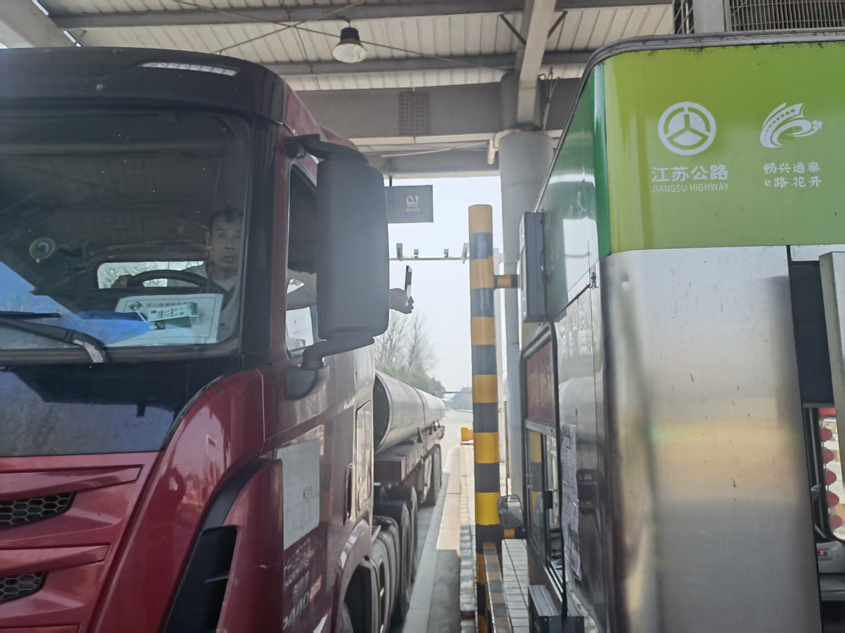 在推进票据电子化的同时,231省道兴化收费站还对支付方式进行优化升级,投用全新自助支付终端,推动司机从“被动扫码” 向 “主动扫码” 转变。该终端识别精准、响应快速,司机出示付款码即可完成自动扣费,缴费成功后栏杆自动抬起放行,全程无需人工干预。针对货车司机因车身较高扫码不便的问题,收费站开展多轮调研与实操测试,在混合车道收费岗亭上方安装货车专用自助支付设备,货车通行时,司机坐在车内伸手即可完成扫码支付,既提升通行效率,也保障操作安全性。