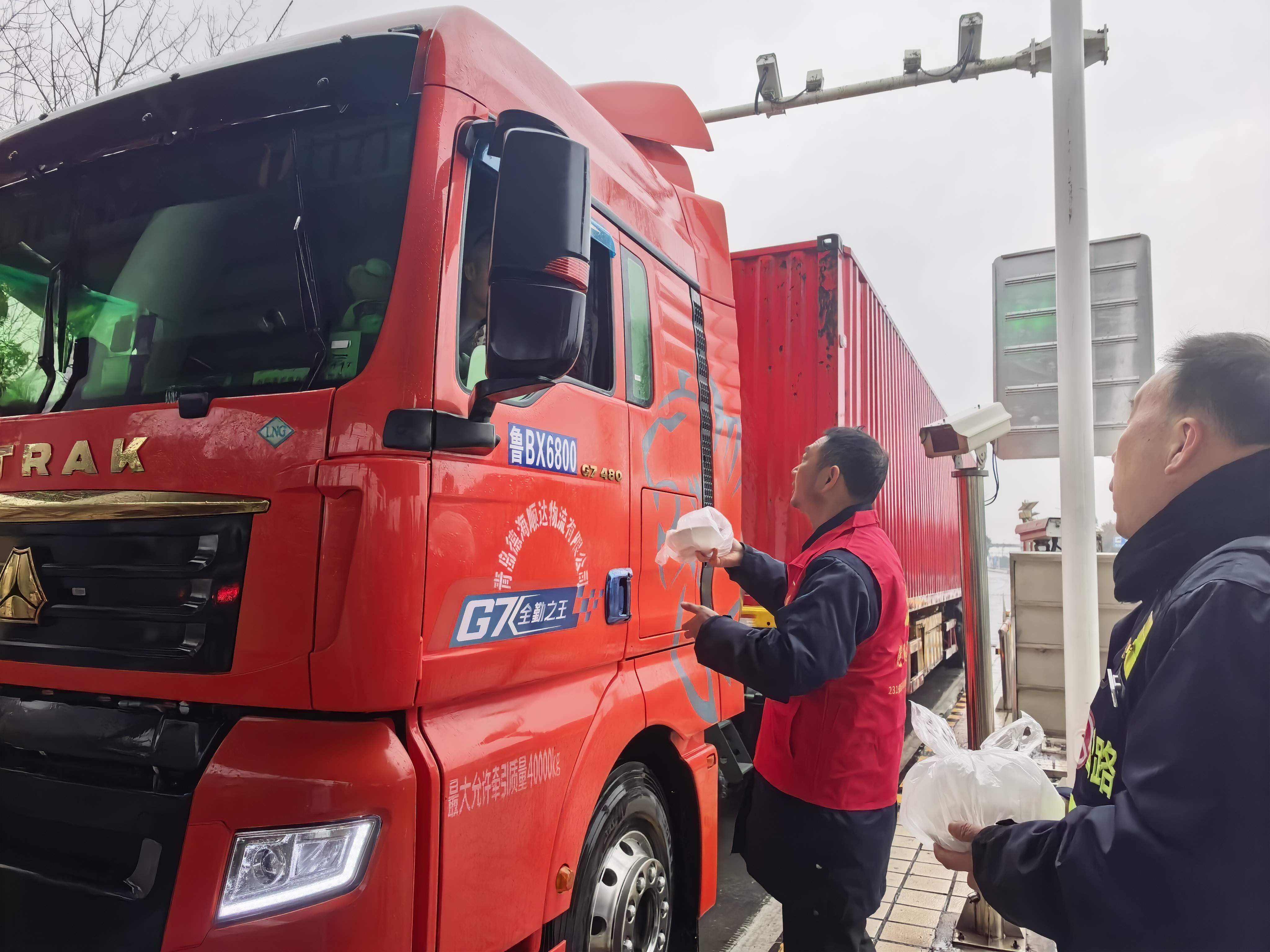 “跑长途还能喝上一碗热粥,太暖心了!”货车司机张师傅接过腊八粥,连声道谢。连续驾驶多个小时的他,本打算在车上简单啃个面包将就早餐,没想到在路过231省道兴化收费站时收获了这份意外的节日惊喜,“这不仅是粥,更是对我们司机的关心和关怀。”此外,在收费广场上,志愿者们还准备了修车工具、常用药品、热水、简易食品等应急物资,全方位为司乘人员排忧解难。