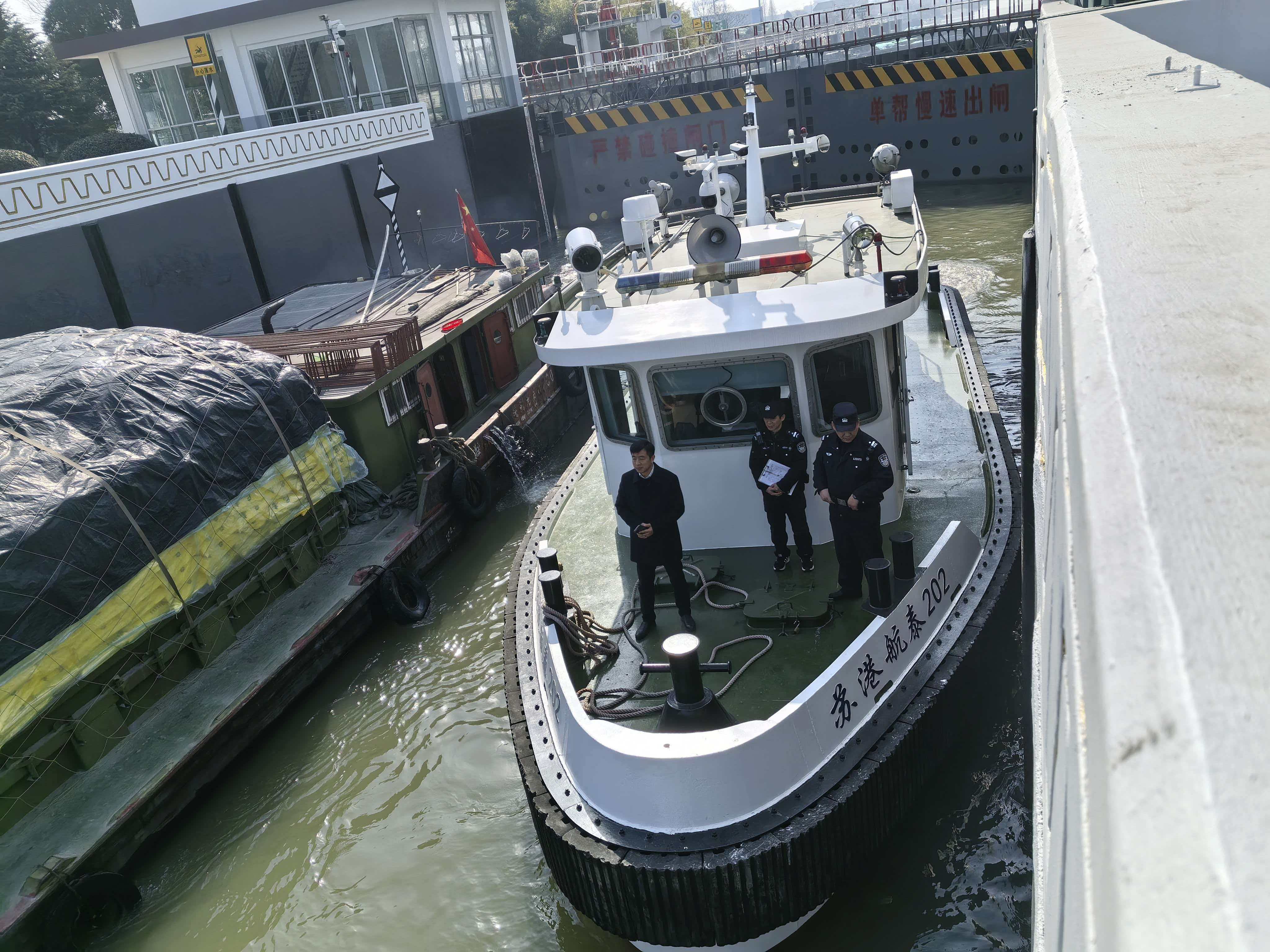 接警后,辖区派出所民警第一时间赶赴现场,在核实船舶具体位置与船主病情后,发现待闸船舶队列较长,若按常规过闸流程通行,将严重延误救治时机。为抢抓黄金救援时间,民警当即与口岸船闸进行对接,详细说明现场危急情况,协调开启应急过闸绿色通道,优先安排该船舶快速过闸。