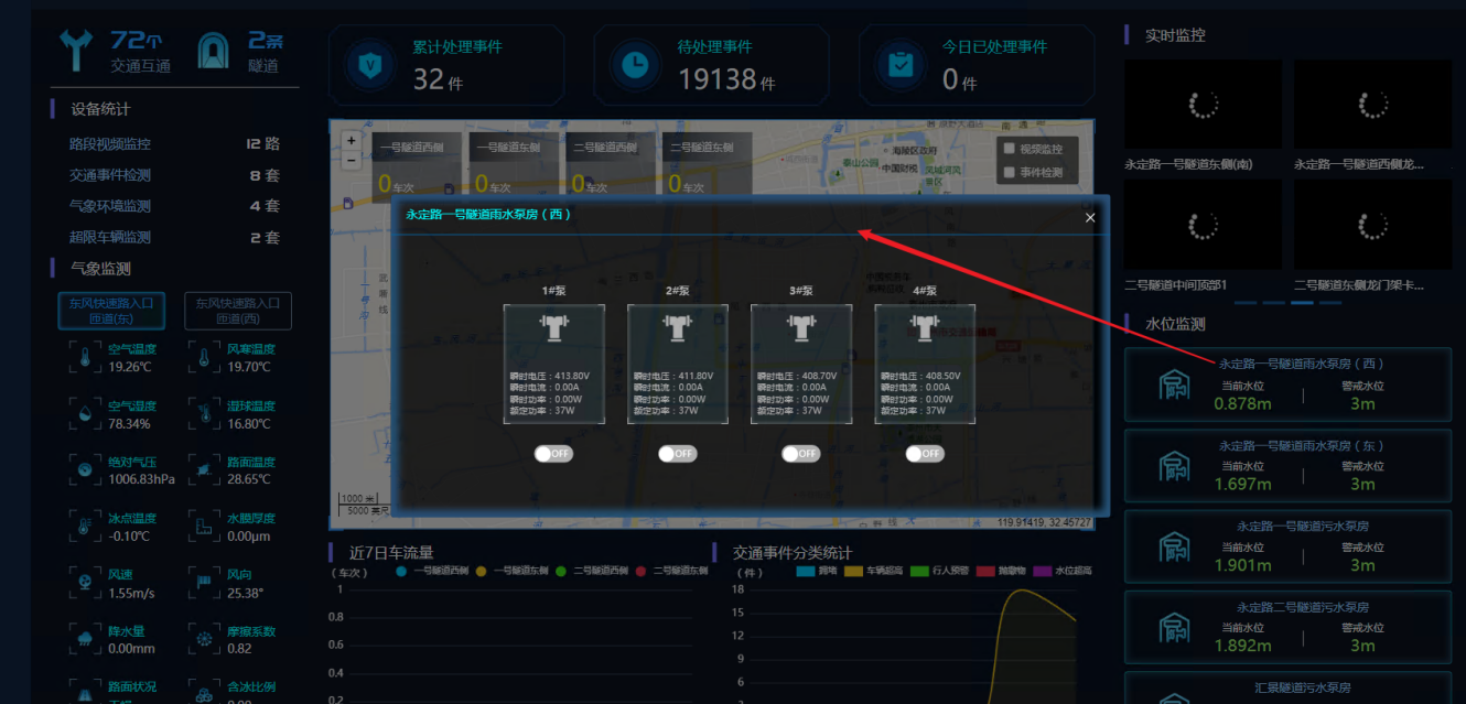 作为城市交通“大动脉”一部分,泰州6座快速路隧道的防汛安全,直接关系到群众出行安危。泰州公路部门坚守“防抗救结合”原则,量身定制隧道专属防控方案:永定路一号隧道、迎春路隧道采用双雨水泵房+废水泵房“双泵房”协同强排,可自动感应液位启动,快速排净强降雨汇水;永定路二号隧道、梅兰路隧道、济川路隧道、汇景隧道各配备4-5台大功率水泵全天候“待命”,同步实现液位自动启动与手动强制启动双保障,确保极端降雨时排水高效可控。同时,依托专项应急预案,集结统筹协调、现场处置、封道保洁工作组,严格执行24小时值班值守制度,加密隧道巡查频次,全力防范隧道积水、倒灌风险。