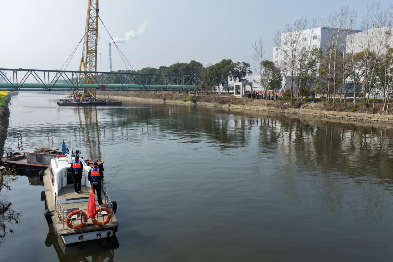 施工恰逢周末,为最大限度保障工程进度、减少对园区企业生产的影响,市交通执法支队执法人员主动放弃休息,加班加点,周密部署。第一时间发布航行通告,协调口岸船闸、周山河船闸实施间断性封航,并派遣执法艇全程现场守护,确保金泰至生物医药产业园区供热管网工程跨越南官河航道施工安全高效推进,为园区企业生产经营解决了“燃眉之急”。